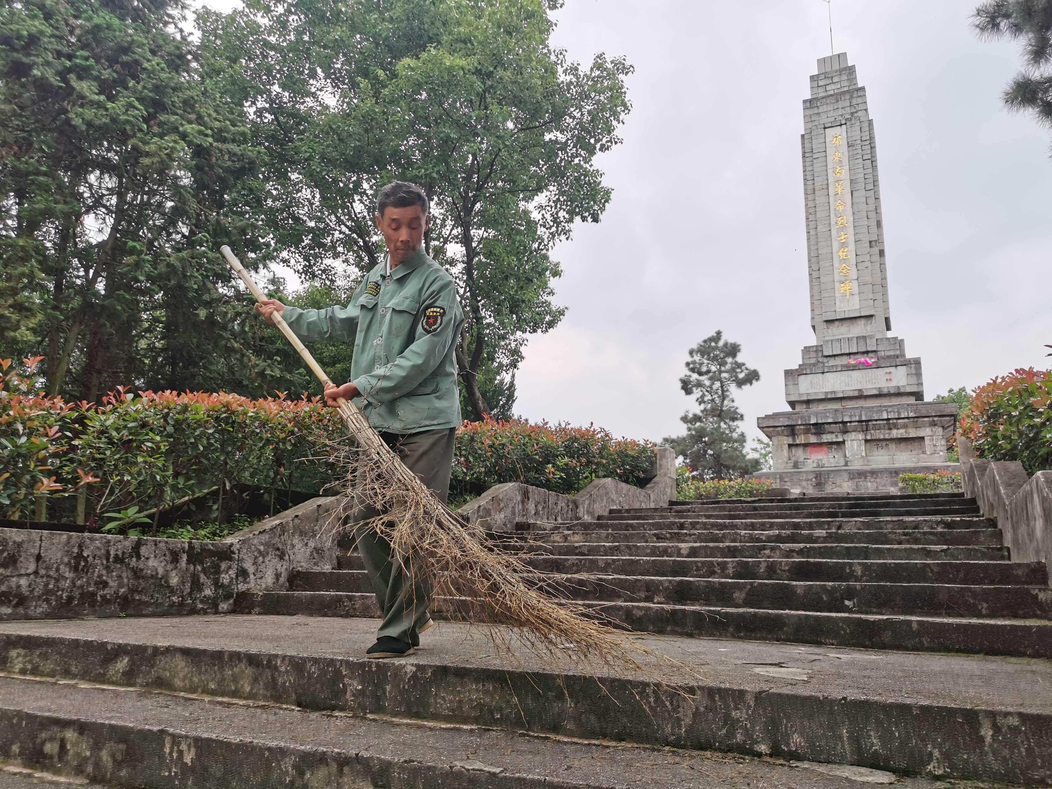 “我要守護好你們?!笔嬖趧t在紀念碑前莊嚴承諾。自那以后,舒在則平日出門打工,周末上山打掃陵園。2010年后,舒在則辭了工,從此,無論寒冬臘月還是盛夏酷暑,他幾乎每天都會騎著電動車上山,掃地、割草、栽花、種樹、施肥,有時一忙就是一整天。