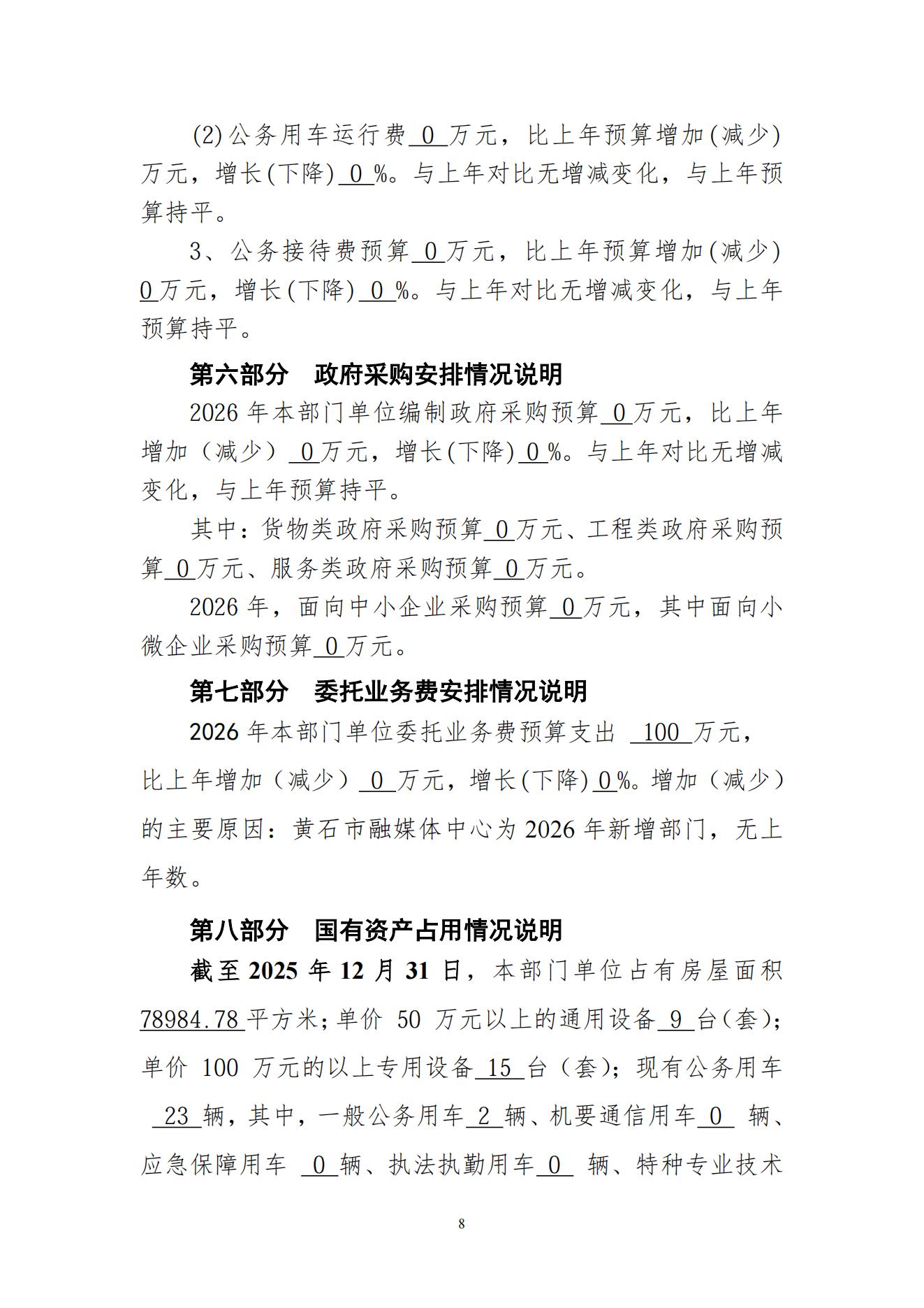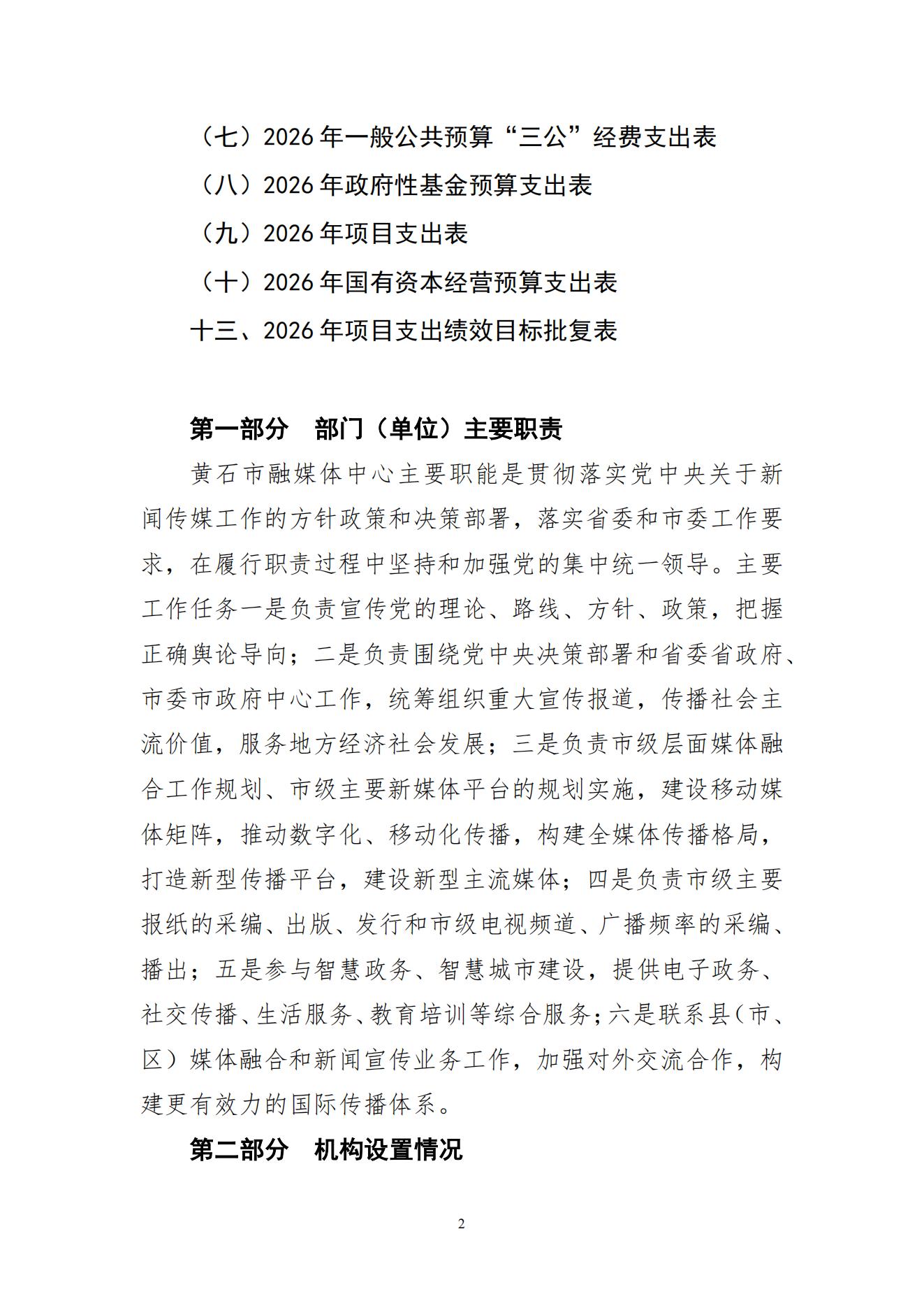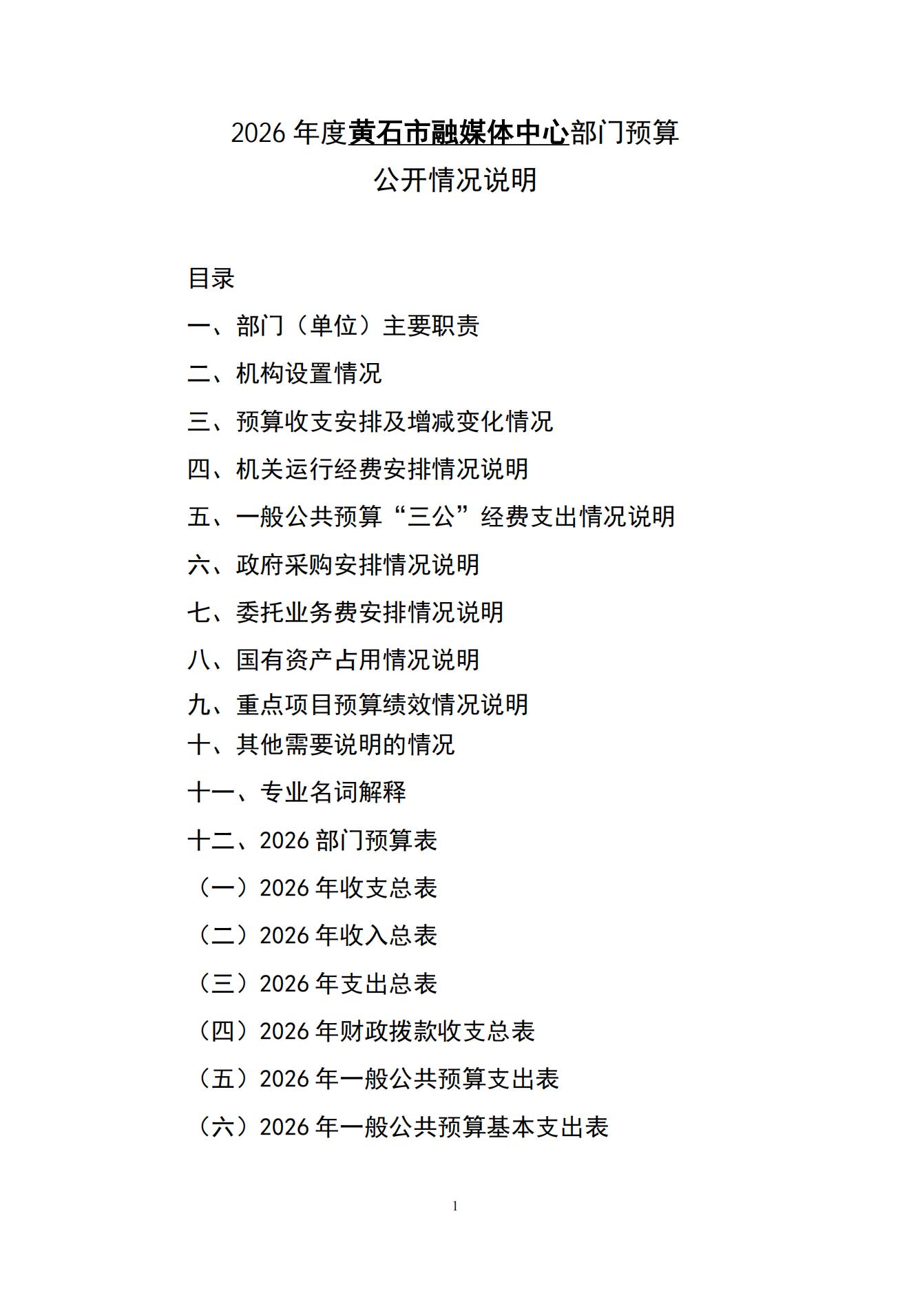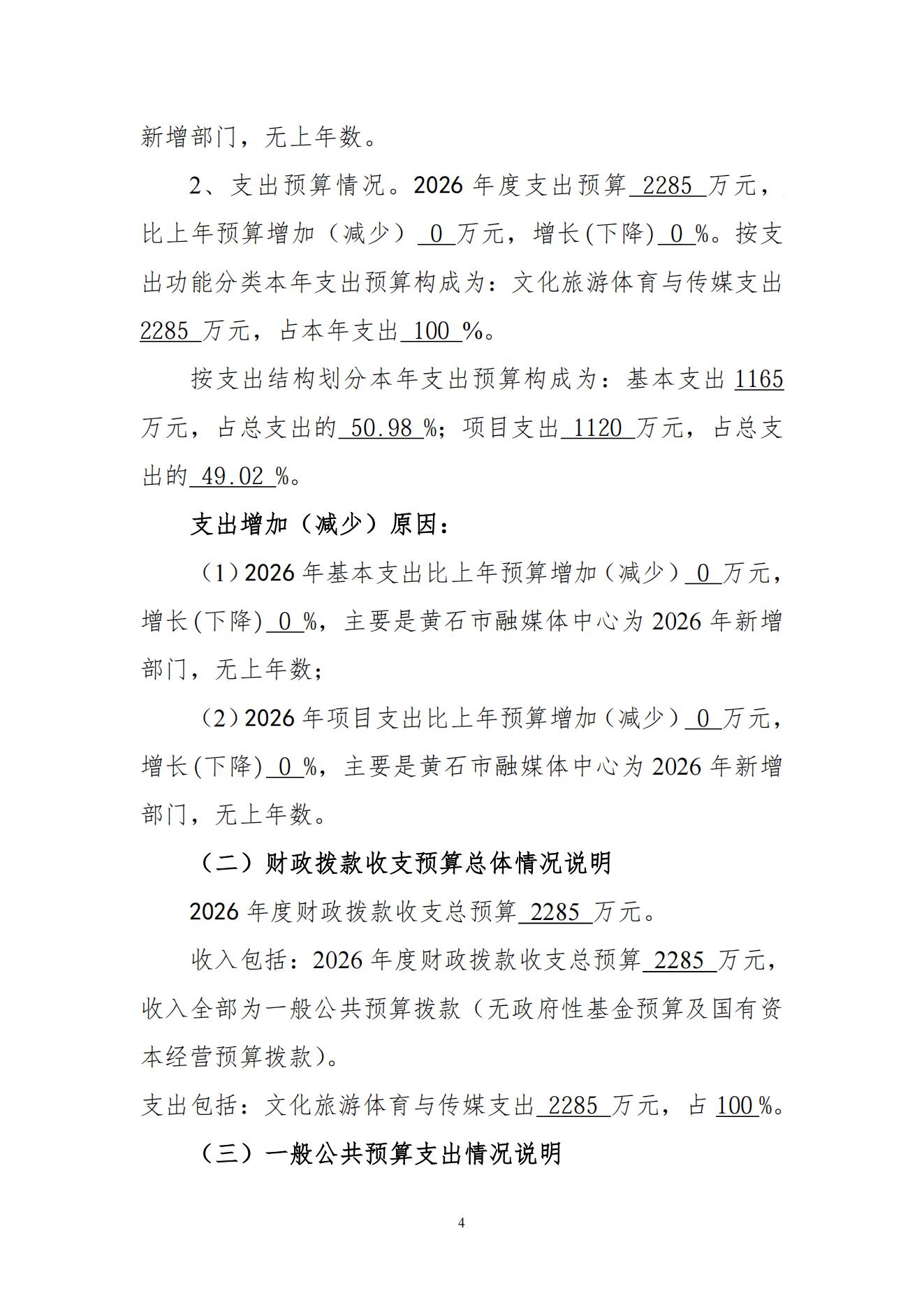 2026年度黃石市融媒體中心部門預算公開情況說明