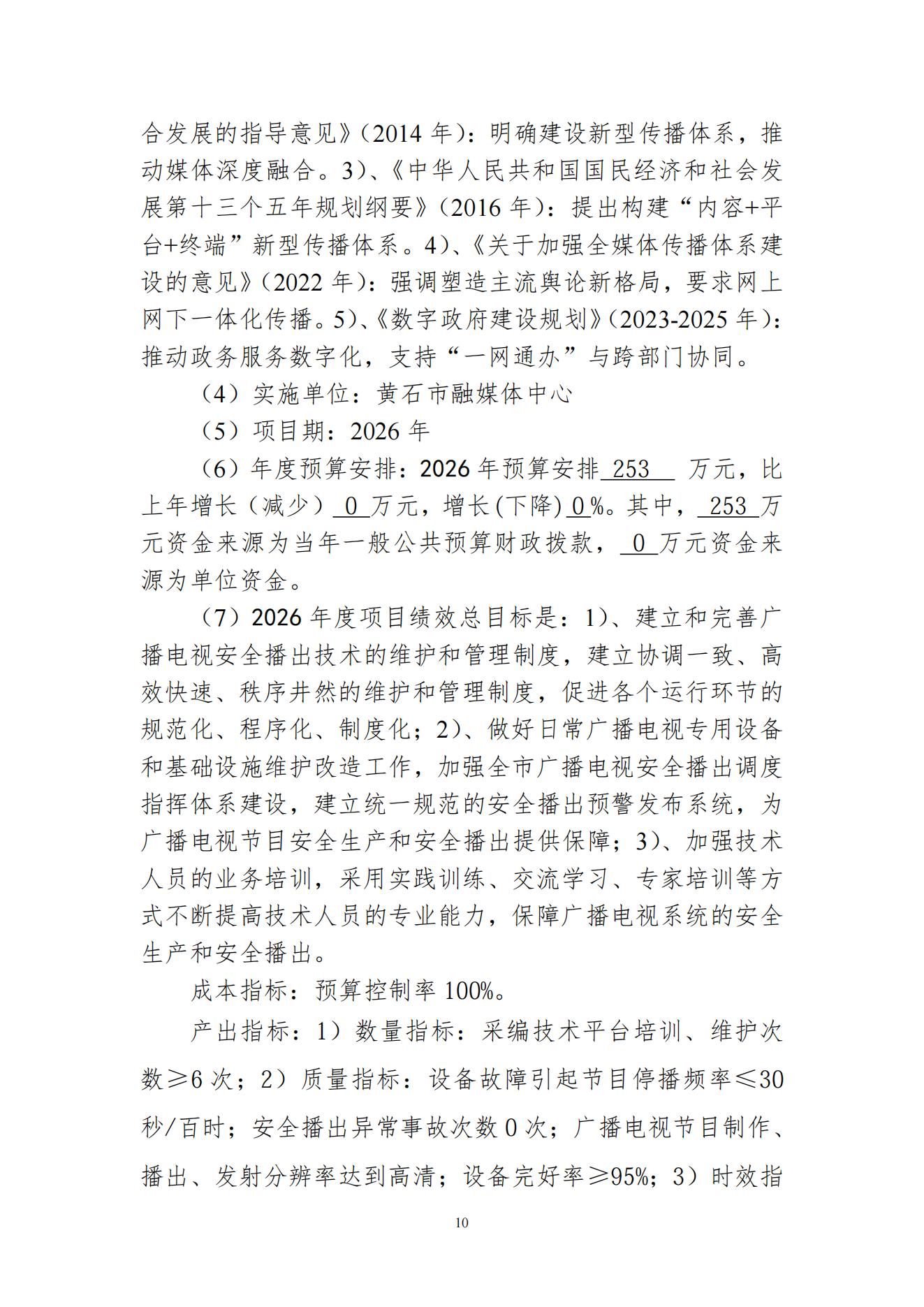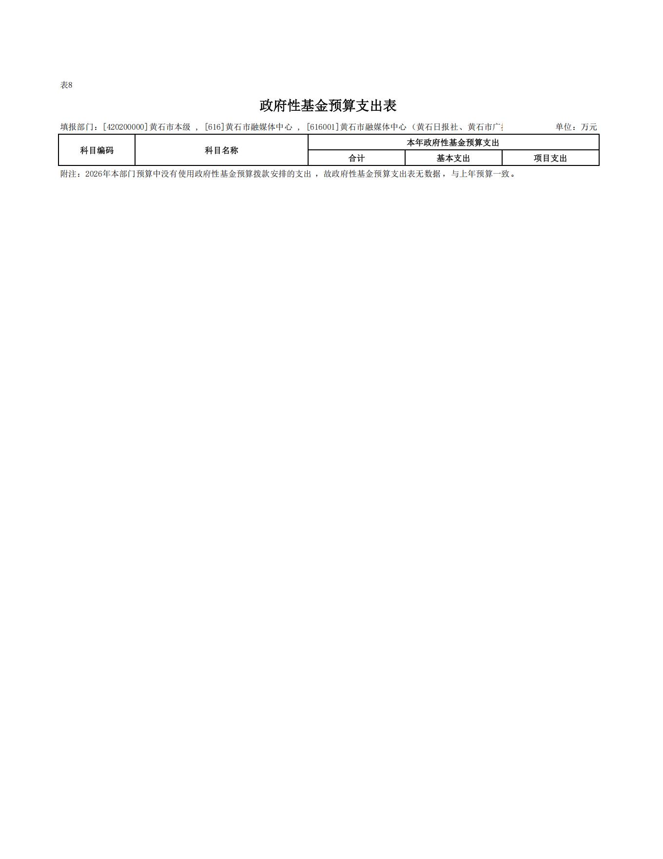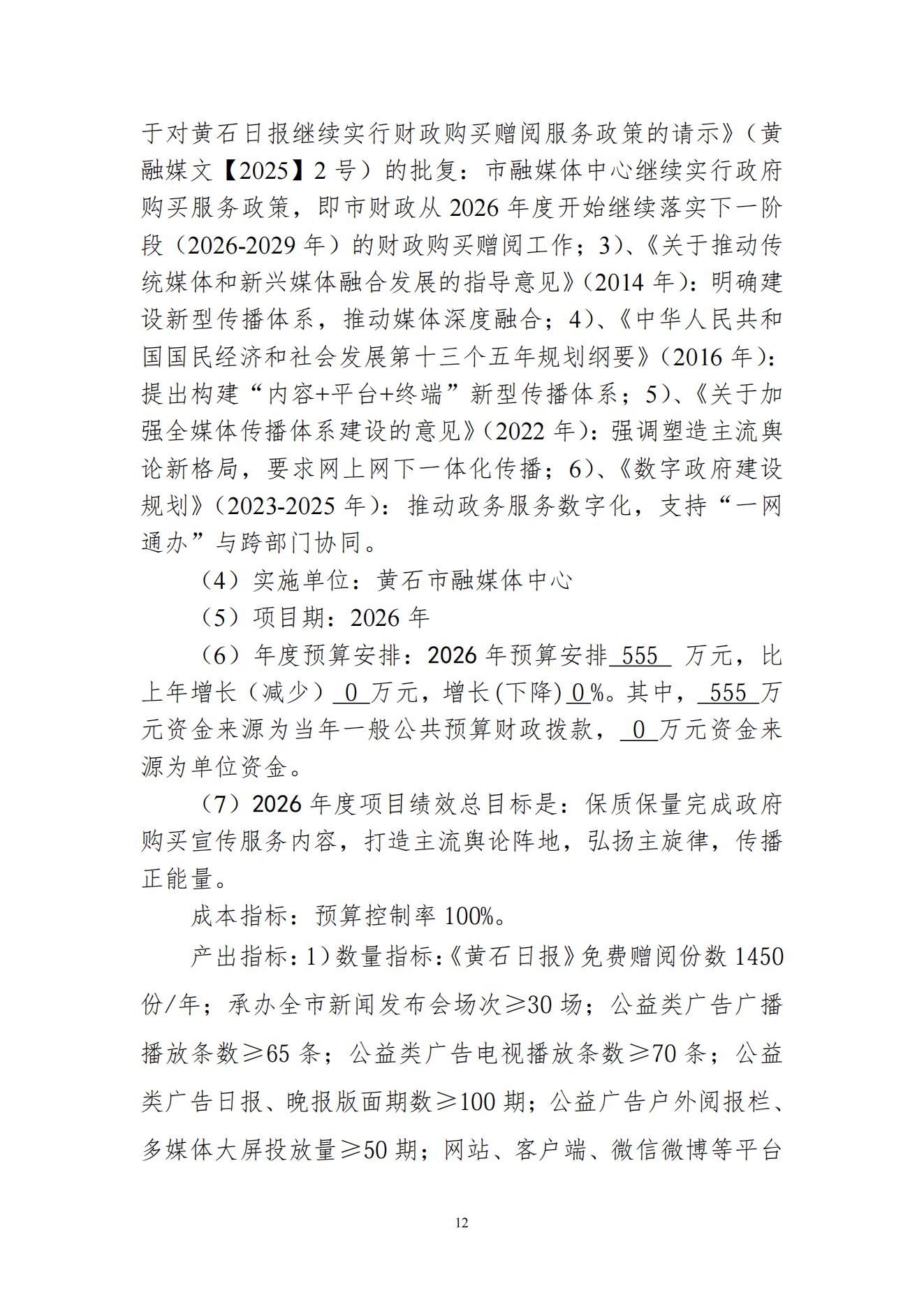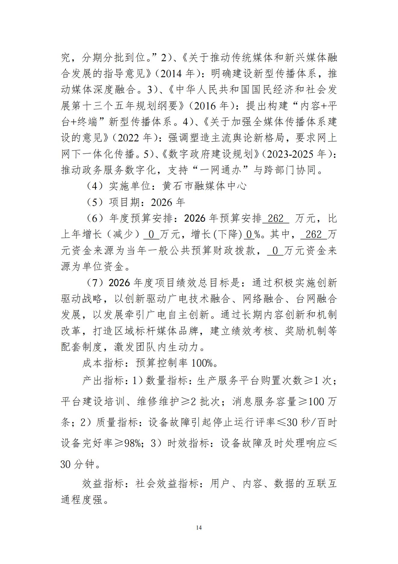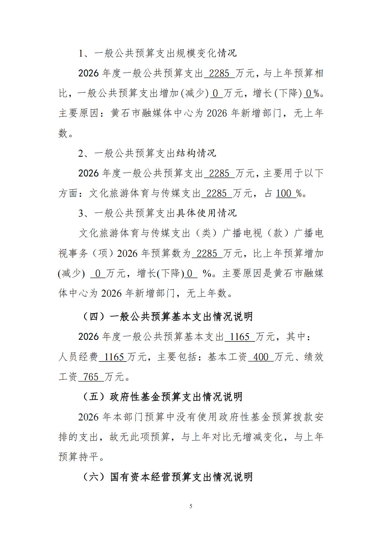 2026年度黃石市融媒體中心部門預算公開情況說明