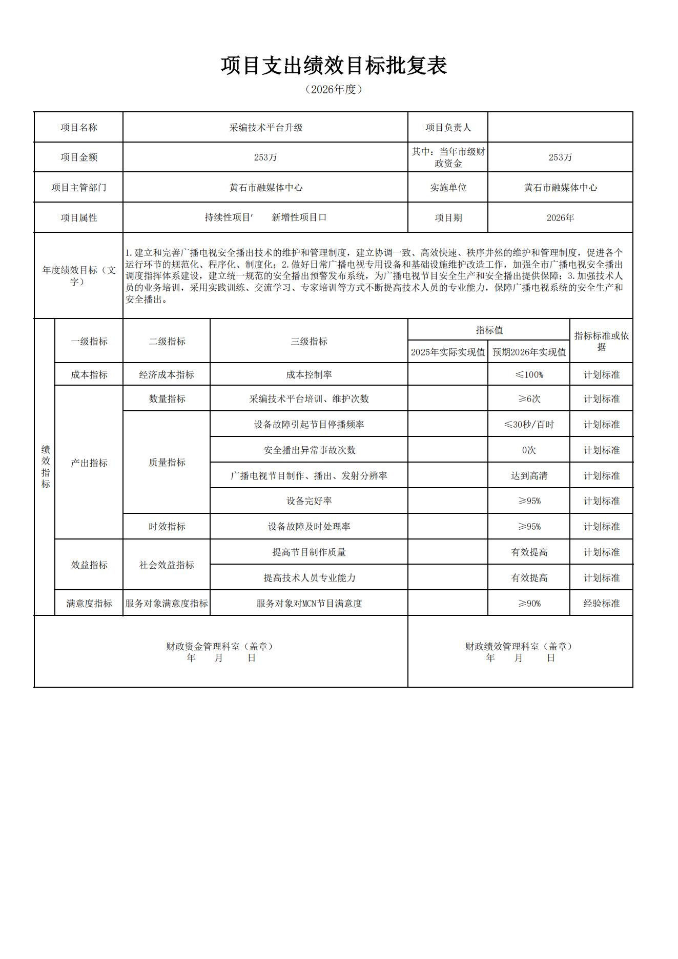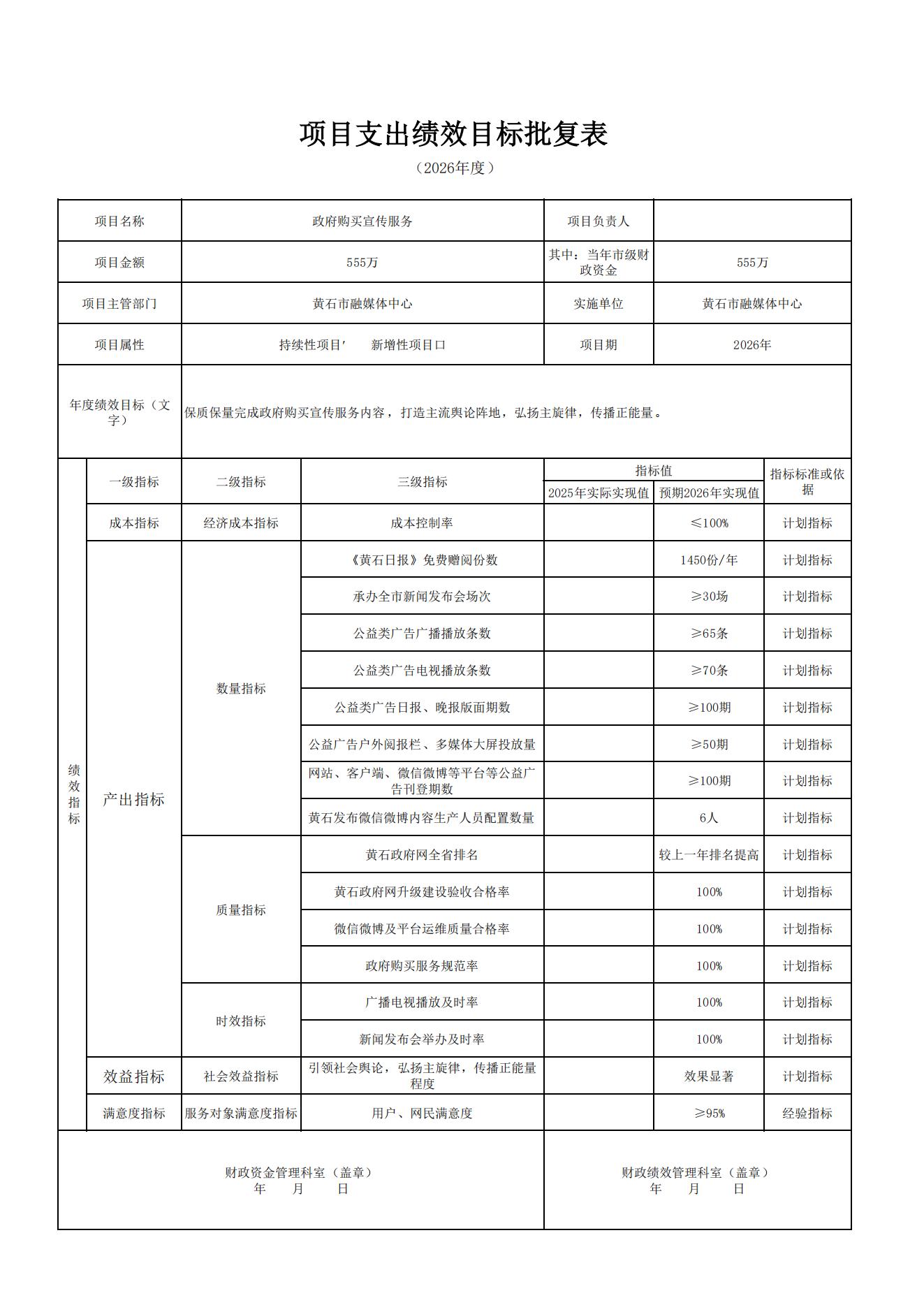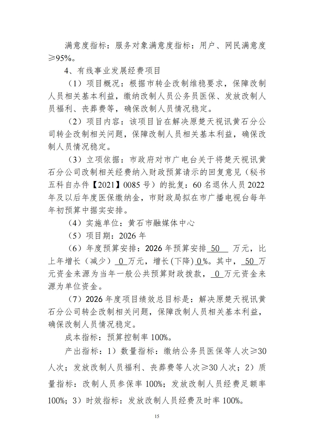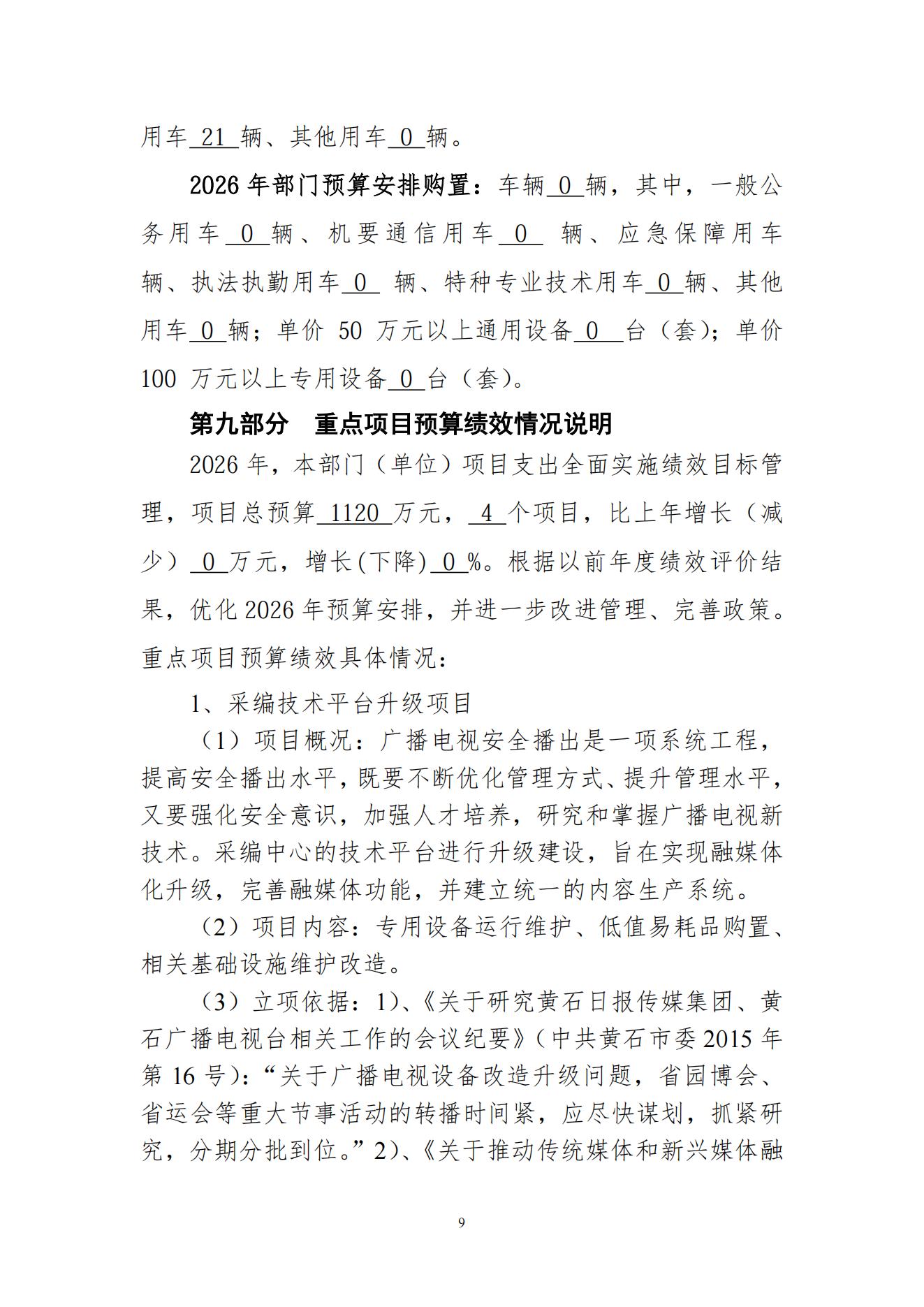2026年度黃石市融媒體中心部門預算公開情況說明