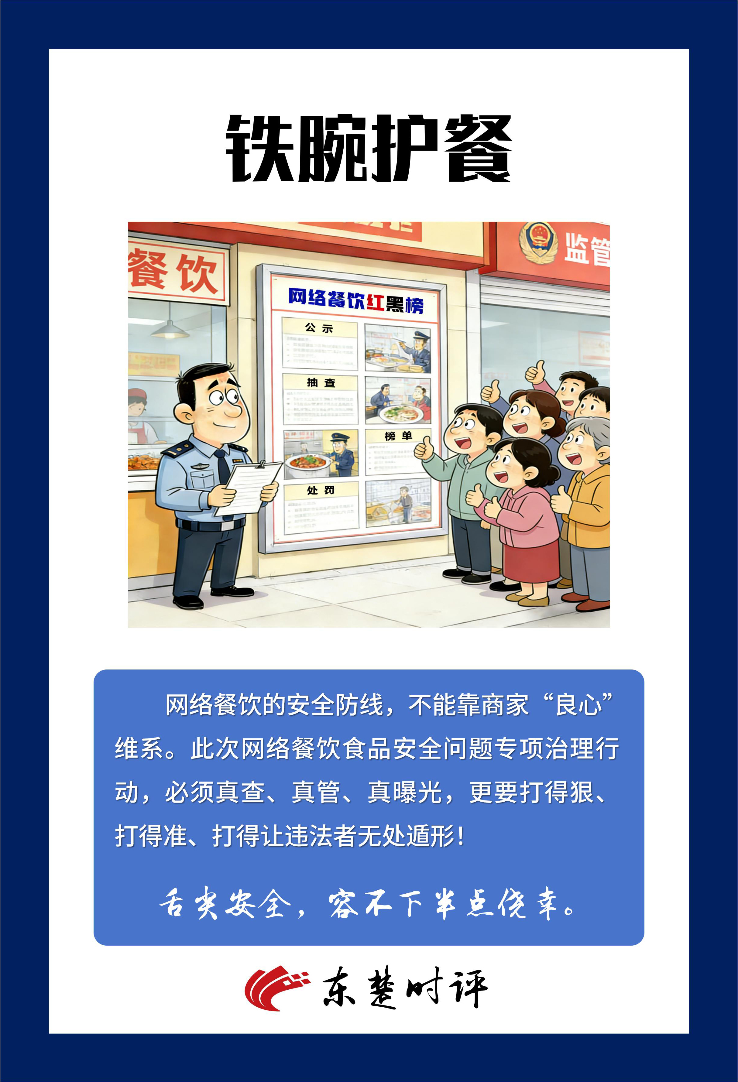 網(wǎng)絡(luò)餐飲的安全防線,不能靠商家“良心”維系。此次治理,必須真查、真管、真曝光,撕掉“隱身衣”,鏟除“黑窩點(diǎn)”。舌尖安全,容不下半點(diǎn)僥幸。