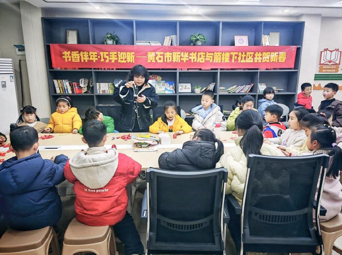 5日,黃石市新華書店聯(lián)合下陸區(qū)箭樓下社區(qū)開展“書香伴年巧手迎新”活動。