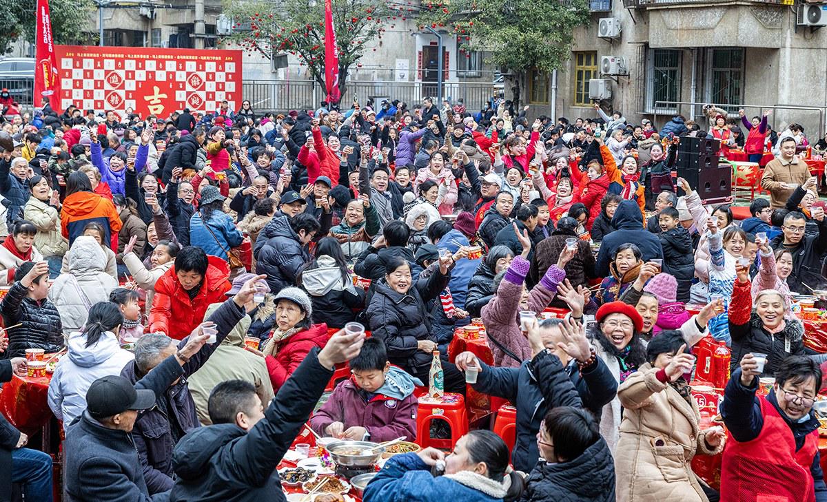 7日,下陸區(qū)青龍山社區(qū)電廠小區(qū)舉行百家團圓宴活動, 1000余名社區(qū)居民相聚在一起,嘗百家宴、敘鄰里情,喜迎新春佳節(jié)。