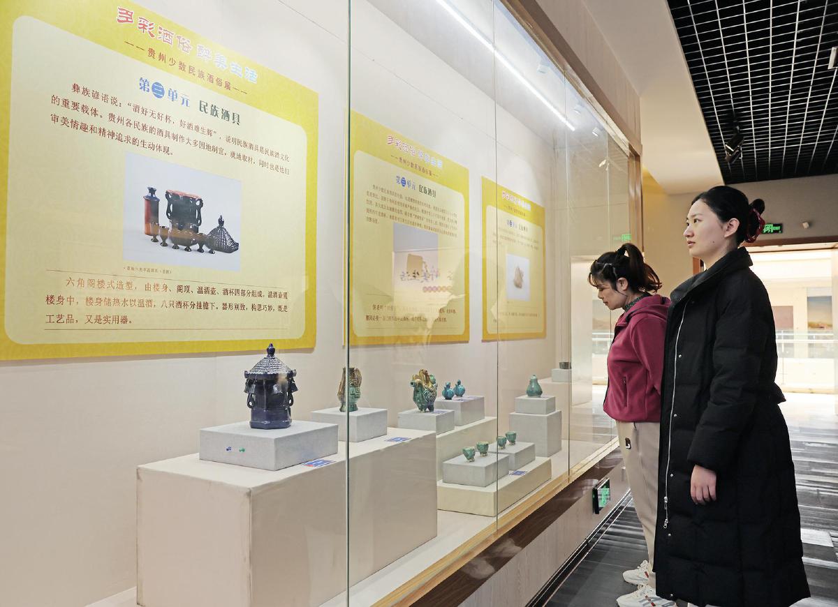 3月30日,市民在市博物館參觀“多彩酒俗 醉美生活——貴州少數民族酒俗展”。本次展覽由黃石市博物館與遵義市博物館聯合舉辦,設置民間釀酒、酒禮酒俗、民族酒具三大板塊,展出51套共119件民族酒具與少數民族服飾,通過實物與圖文,生動展現貴州少數民族獨特的酒俗文化。
