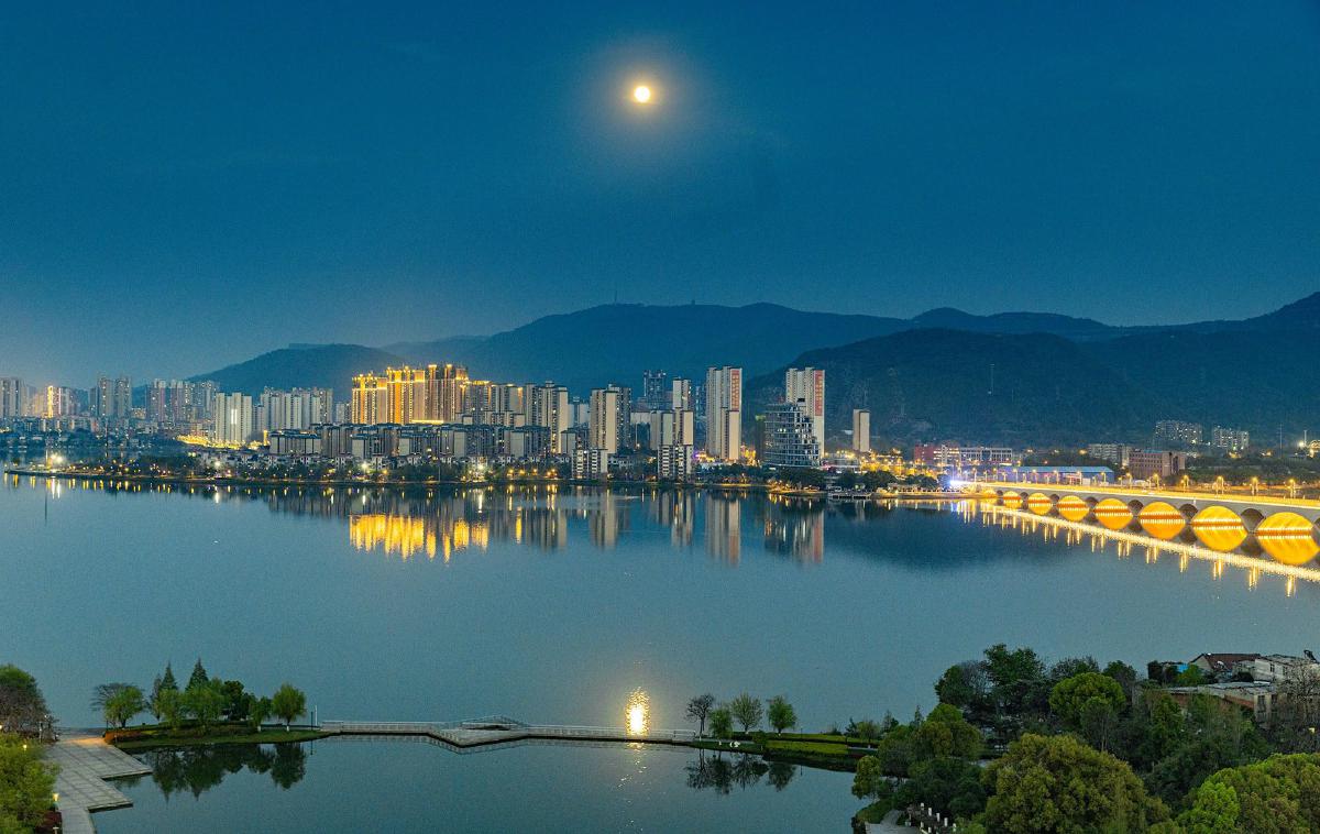 1日,一輪皓月當(dāng)空,清輝灑滿(mǎn)磁湖。城市燈火與月光交相輝映,在水面漾起粼粼金波,盡顯黃石生態(tài)宜居的城市之美。黃石融媒記者 周巍 攝