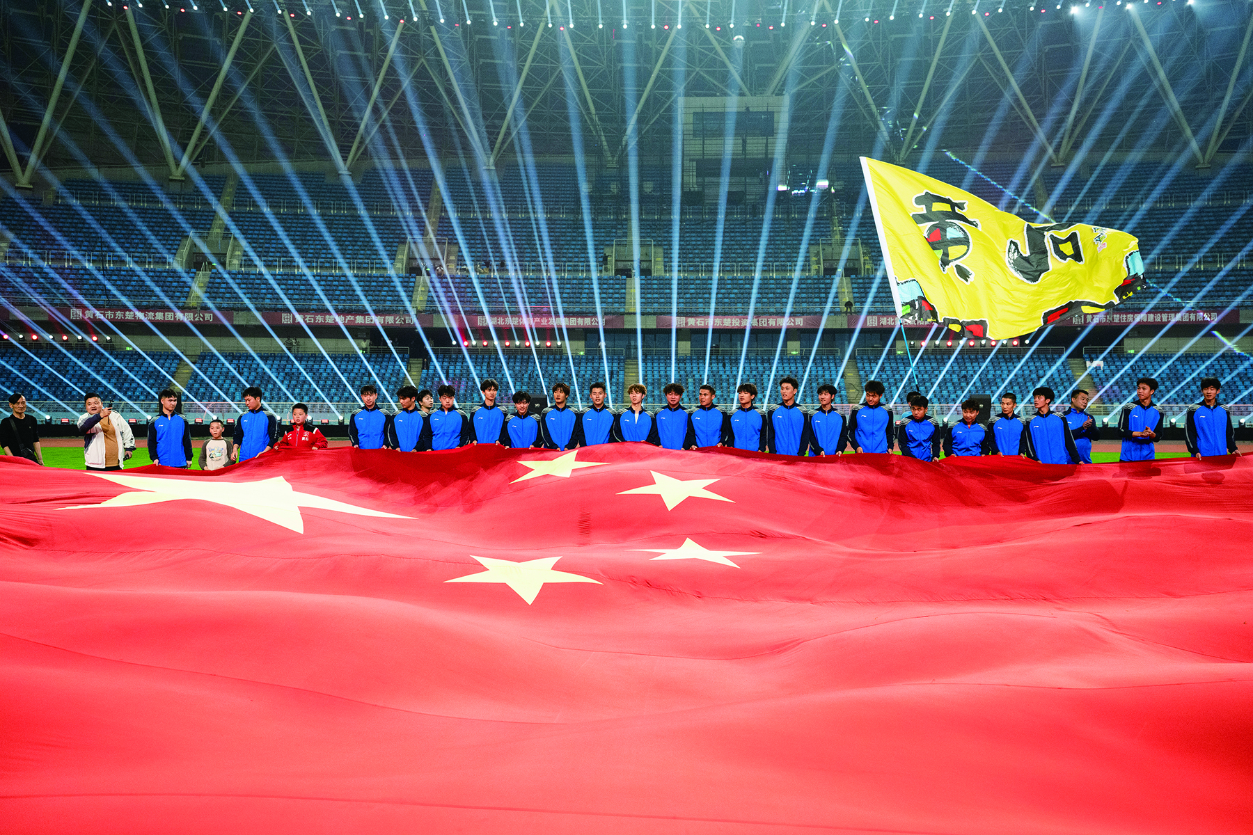 “楚超”黃石隊(duì)球員與球迷共同展示巨幅國(guó)旗 黃石融媒記者 石勇 攝