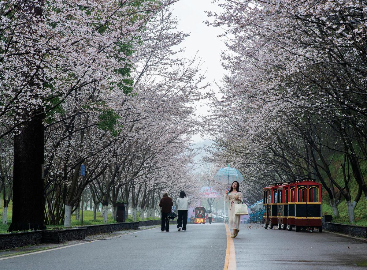 一場春雨,處處藏著春日浪漫,每一幀都是人間好光景。圖為團(tuán)城山公園,櫻花大道美如畫。黃石融媒記者 石勇 攝