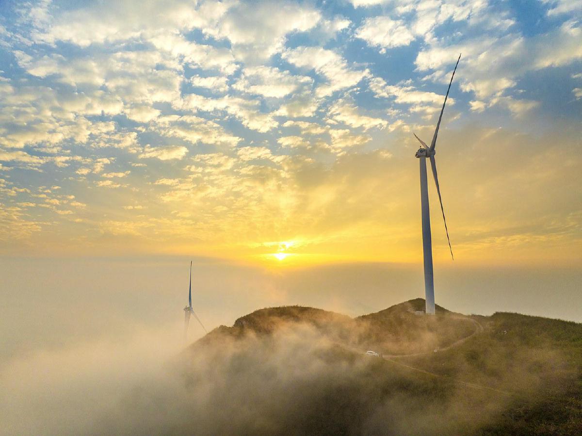 3月31日,黃石筠山出現(xiàn)云海景觀。落日熔金,云海在山谷間奔涌,山巔的風車矗立云端,蜿蜒的山路點綴其間,構(gòu)成一幅壯美的生態(tài)畫卷。