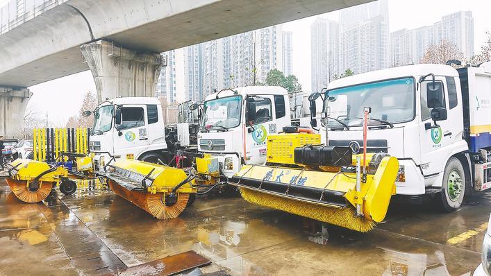 武漢城管環(huán)衛(wèi)部門(mén)迎戰(zhàn)寒潮,雪滾車(chē)、雪鏟車(chē)等大型除雪設(shè)備就位。 ? ?(湖北日?qǐng)?bào)全媒記者 張競(jìng)恒 通訊員 馮夏雪 陳婷 攝)