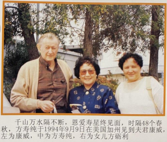 1994年9月,在女兒的陪伴下,方壽純前往加州見康威——這是兩人闊別48年后的第一次見面,也是最后一次。當(dāng)被問及相見情景,方壽純平靜地說:“沒說什么,不知從何說起。”兩人共進(jìn)晚餐,默默相伴4小時(shí)。2年后,康威病逝。