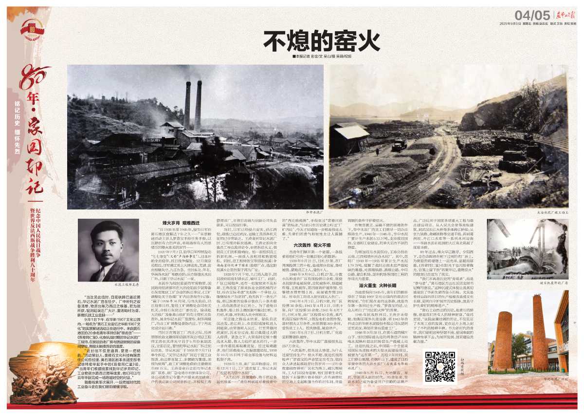 “六次轟炸,損失這么慘重,為什么還要堅持生產(chǎn)?窯火不熄,就是抗戰(zhàn)的槍聲!”羅荔寶的聲音堅定而有力,他向眾人講述起那段悲壯的歲月——270余枚重磅炸彈將廠區(qū)化為焦土,破瓦頹垣間,工人們卻沒有退縮,他們冒著生命危險拆下未爆彈片修補鍋爐,在布滿彈坑的空地上支起帳篷當作臨時車間,用最簡陋的條件守護著窯火。