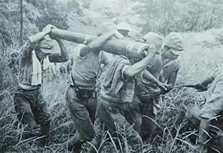 1938年9月15日,陽新富水河一帶,搬運重武器的侵華日軍小堀部隊士兵。