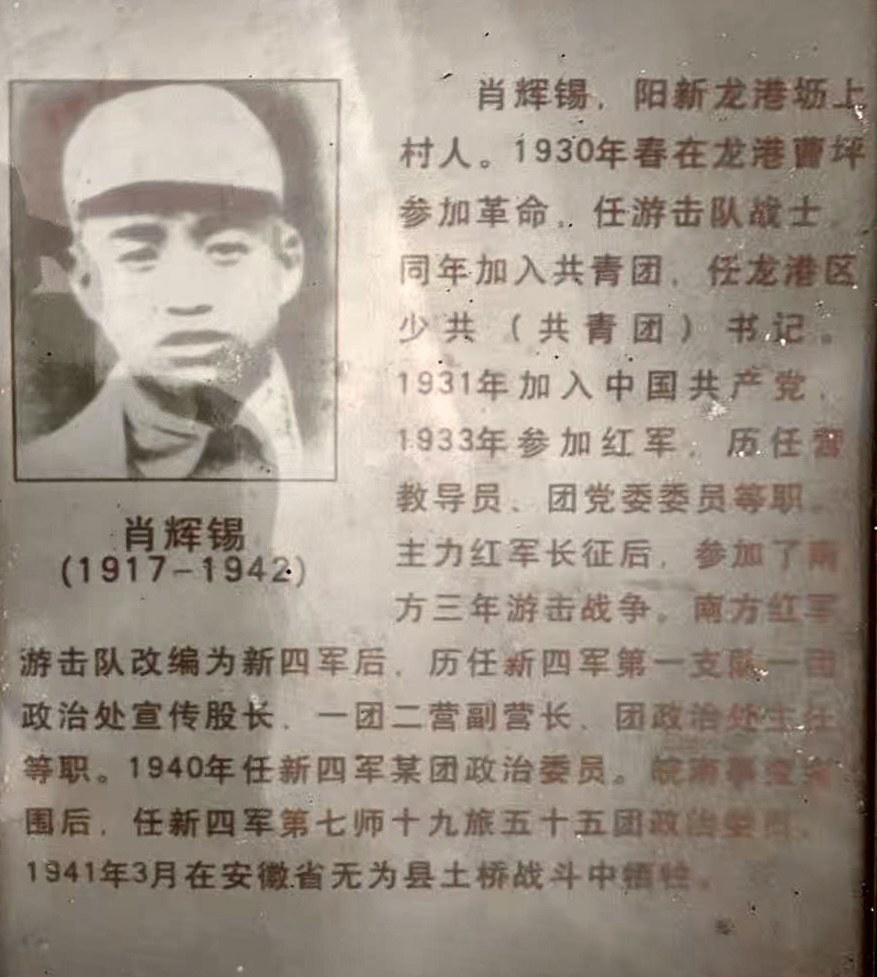 1928年,年僅11歲的肖輝錫加入村兒童團(tuán),隨后投身革命,在湘鄂贛邊區(qū)堅持游擊戰(zhàn)爭。1942年5月,肖輝錫帶隊執(zhí)行任務(wù)時突遇日軍炮艇的機(jī)槍掃射,他與戰(zhàn)友們浴血奮戰(zhàn),最終全部壯烈犧牲,年僅25歲。