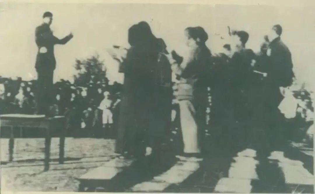 同年12月8日,寒風中的冶雄體育場卻熱氣蒸騰。“港窯湖各界民眾救亡歌詠大會”在這里舉行,5000雙眼睛緊盯著臨時搭建的舞臺,四周“誓死抗日”的標語在朔風中獵獵作響。