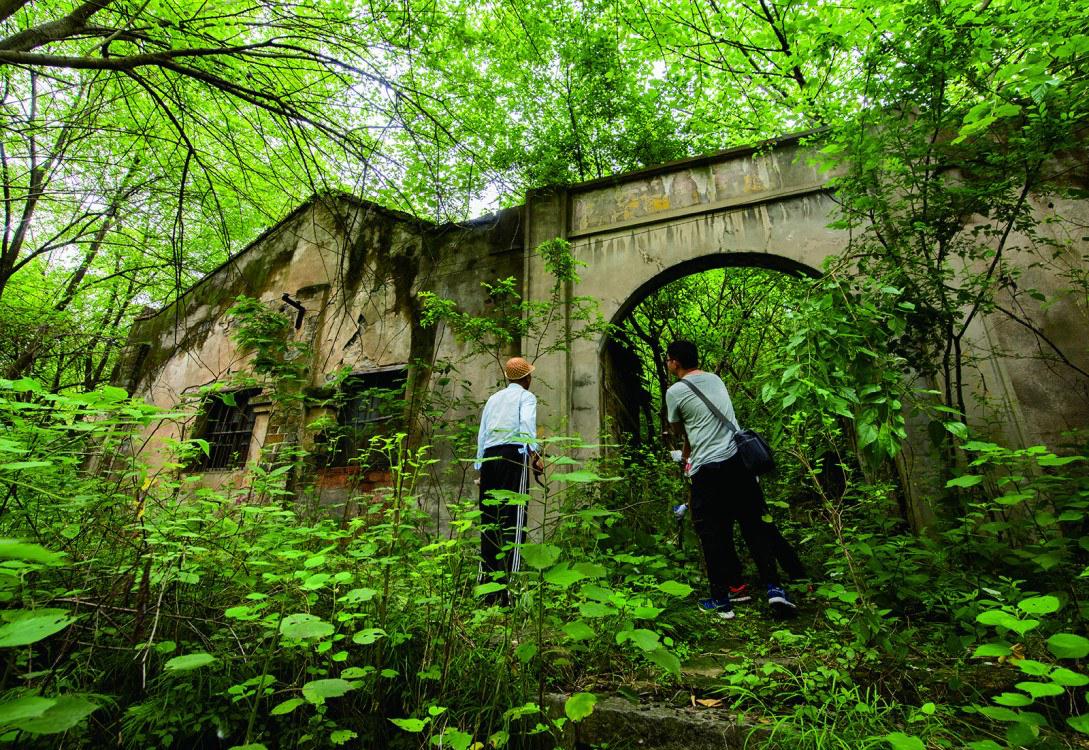 在熊忠武的帶領下,記者來到黃荊山腳下,沿著云霧洞旁蜿蜒的公路向上攀登,只見三個幽深的山洞掩映在一片雜草叢中。漆黑的山洞中有一塊厚實的大石塊,熊忠武說:“這就是高空索道的轉揚機底座?!?/p>