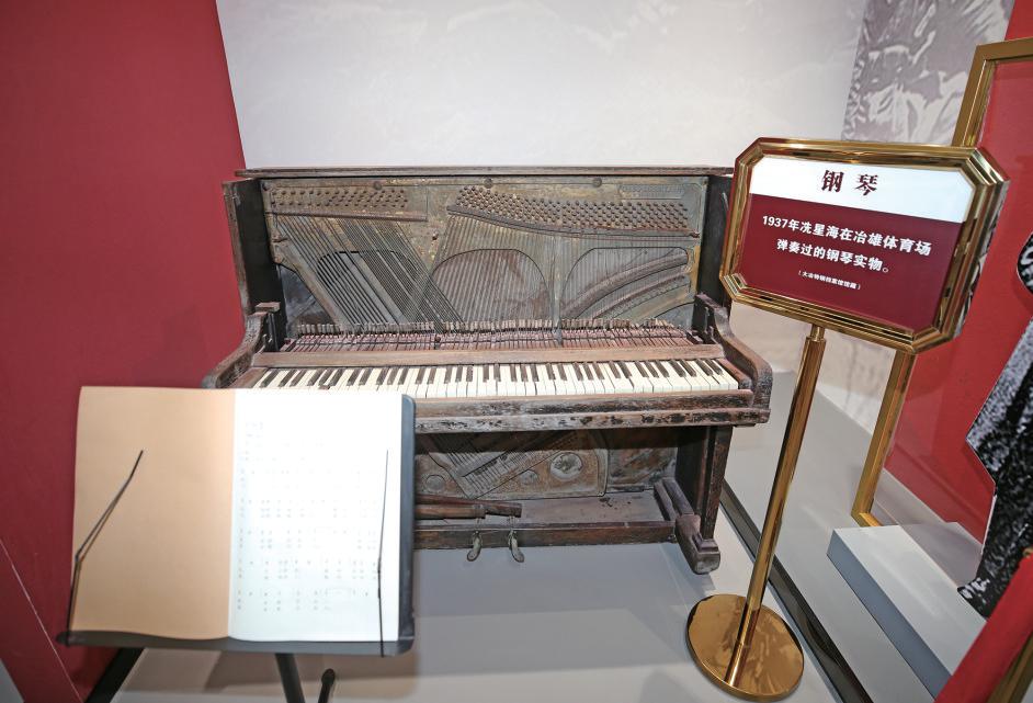 “這就是冼星海當年在冶雄體育場指揮抗日救亡歌詠時使用過的鋼琴,是從德國漢堡進口的。”謝萍說。當工作人員輕輕掀開發(fā)黃的琴譜,《救國軍歌》的旋律隨即在展館內回蕩。那激昂的音符仿佛穿越時空,將人帶回那個烽火連天又熱血沸騰的年代。