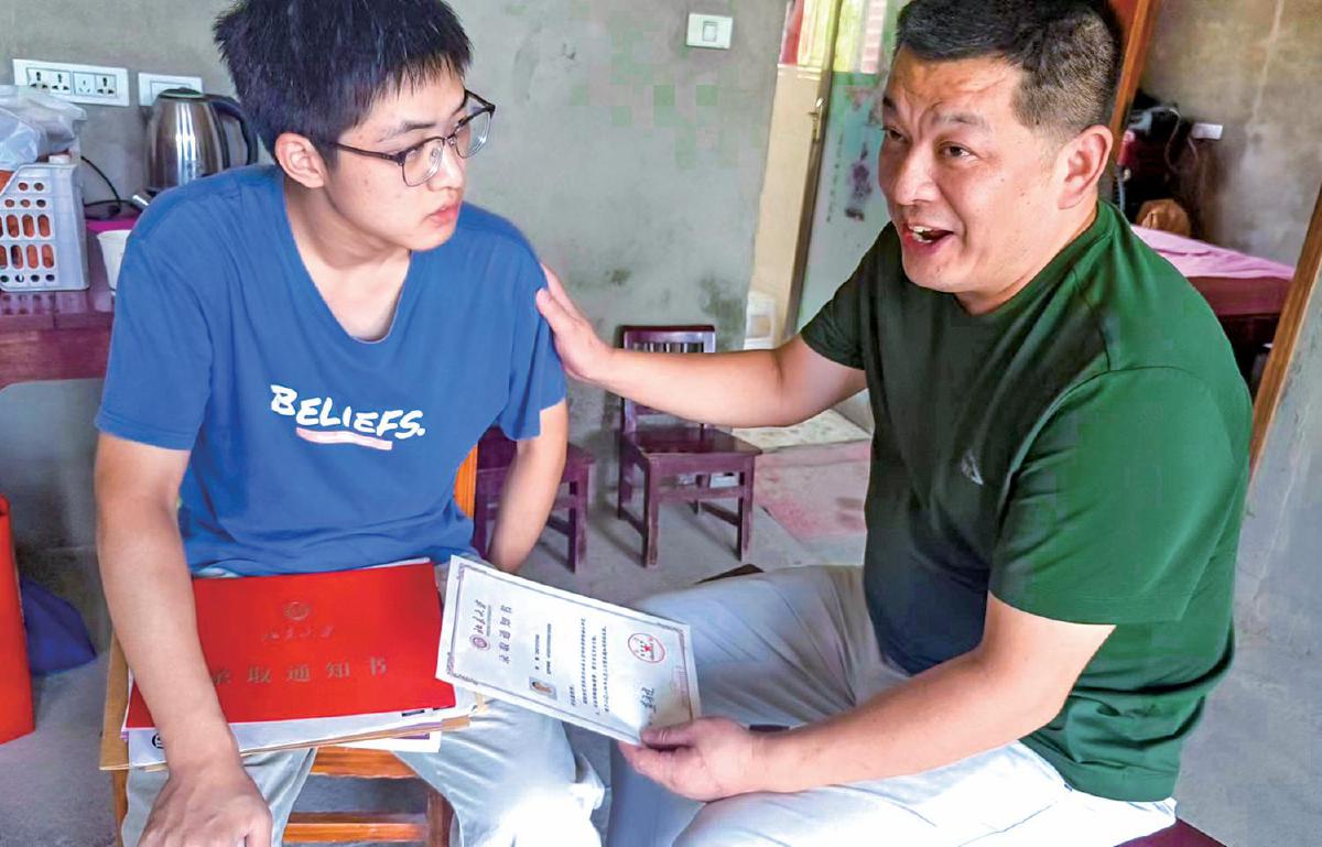 胡安康將北京大學(xué)碩士研究生錄取通知書給龔文龍看