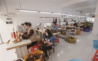 “這里的工作很簡(jiǎn)單,一只手就可以完成工作,家門(mén)口就能賺錢(qián),現(xiàn)在日子好過(guò)了很多。”劉金娥介紹,加工廠是按件計(jì)算工資,平均6元每雙,多的時(shí)候她一個(gè)月能掙3000多元。