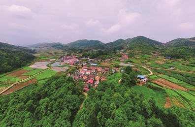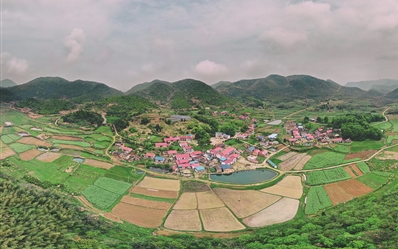 越往上,風景越好。山間,散落著形態(tài)各異的民居;花間蜂飛蝶舞,花下雞犬相聞。一幅濃郁的美麗鄉(xiāng)村圖景盡收眼底。
