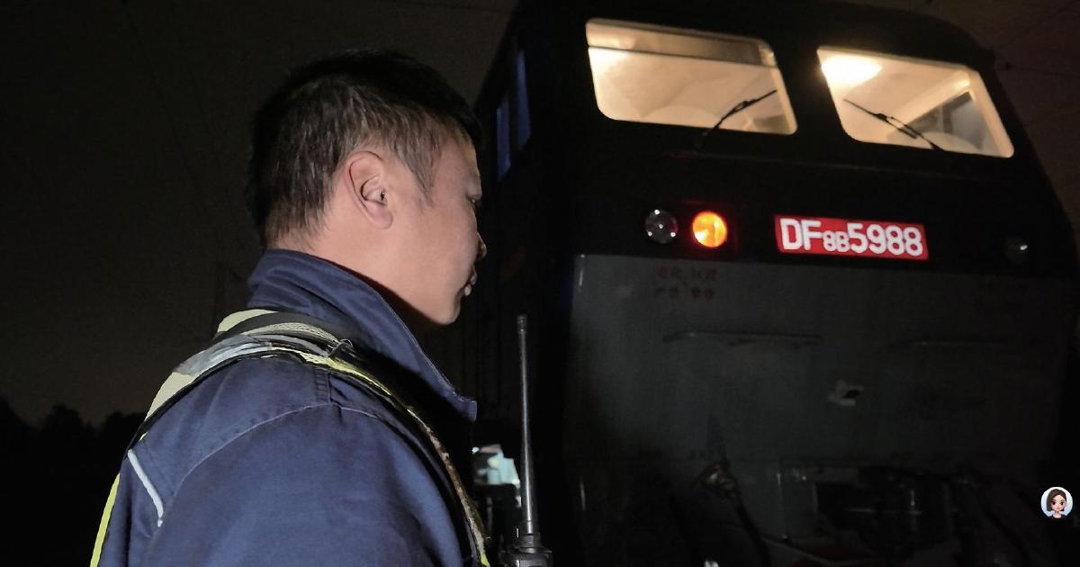 調(diào)車員魏寬寬是貴州苗族人,他考慮到春節(jié)期間人手緊張,主動放棄春節(jié)與家人團圓的機會。圖為他凌晨時分在作發(fā)車準(zhǔn)備