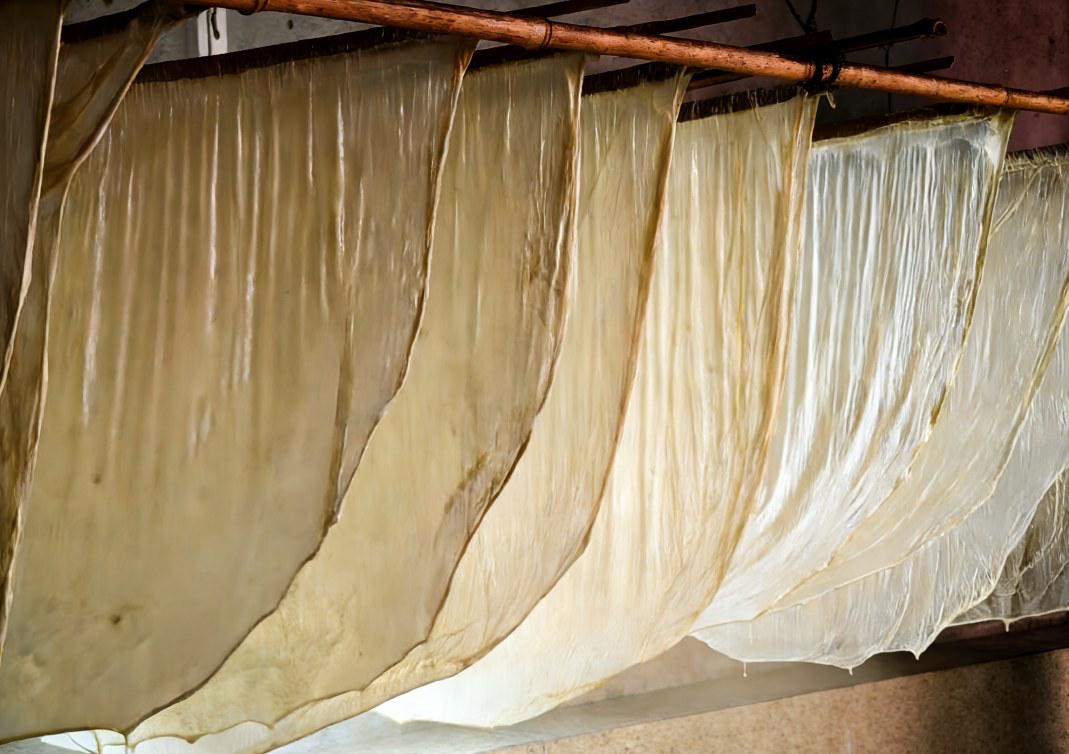 鮮制豆腐皮出鍋,通風(fēng)瀝干,完成定型