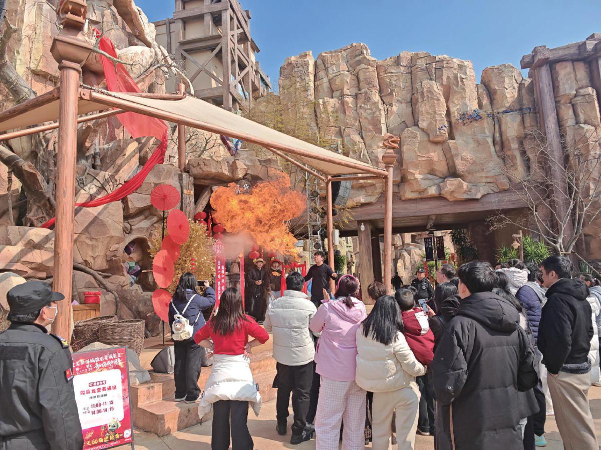 紅火的游玩場(chǎng)景背后,是園區(qū)客流與收入的雙增長(zhǎng),而文旅惠民政策的精準(zhǔn)落地,成為帶動(dòng)客流攀升的重要引擎?!氨敬未汗?jié)假期,園區(qū)客流總量約4萬人次,客流同比增長(zhǎng)107%,收入同比增長(zhǎng)67%,其中外地游客占比超50%。”黃石華僑城恐龍奇域景區(qū)工作人員何柏熙表示,正月初五迎來客流高峰,當(dāng)天入園人數(shù)突破萬人次,創(chuàng)同期歷史新高。