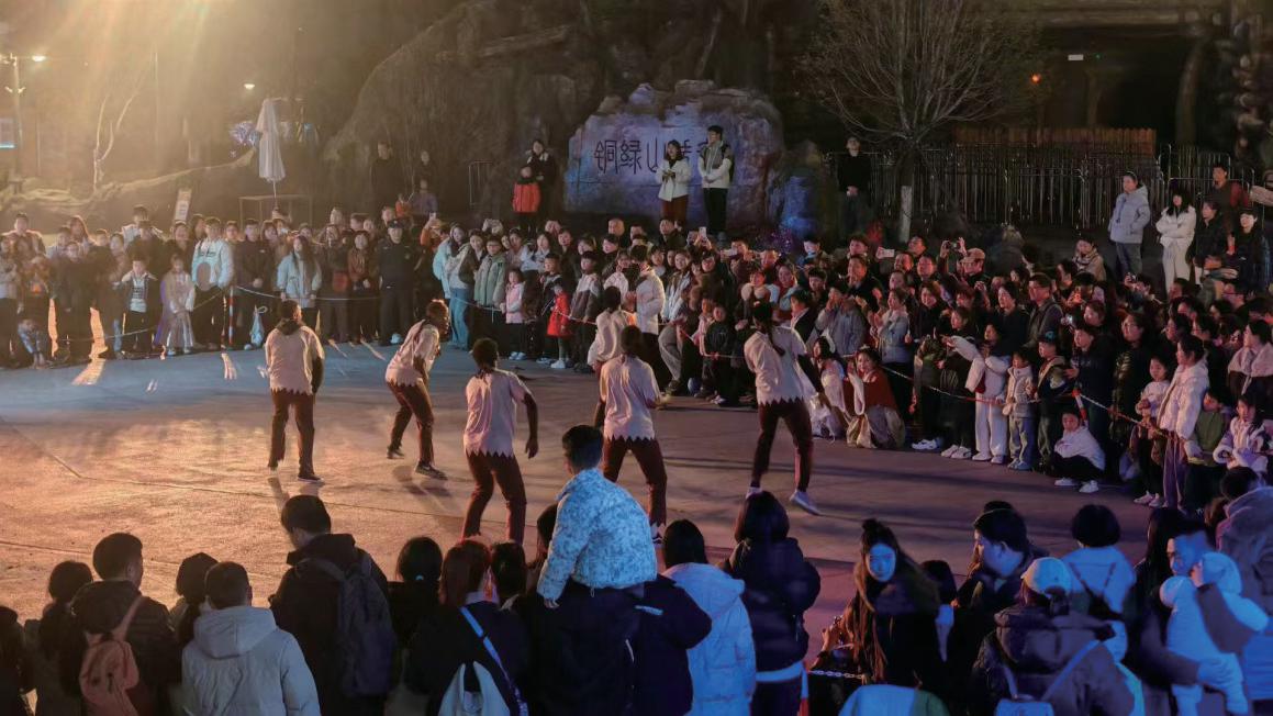 當(dāng)白日的喧囂漸漸沉淀,落日的余暉為園區(qū)披上金色的外衣,另一場(chǎng)屬于夜晚的狂歡才剛剛拉開序幕?!鞍祝凇钡娜珪r(shí)段游玩模式,讓新春歡樂不斷檔。正月初一至初七,園區(qū)將營(yíng)業(yè)時(shí)間延長(zhǎng)至21時(shí),魚燈巡游、非遺打鐵花、儺舞祭火儀式、賀歲煙花秀等特色夜場(chǎng)活動(dòng)輪番上演,為游客帶來別樣的夜間體驗(yàn)。